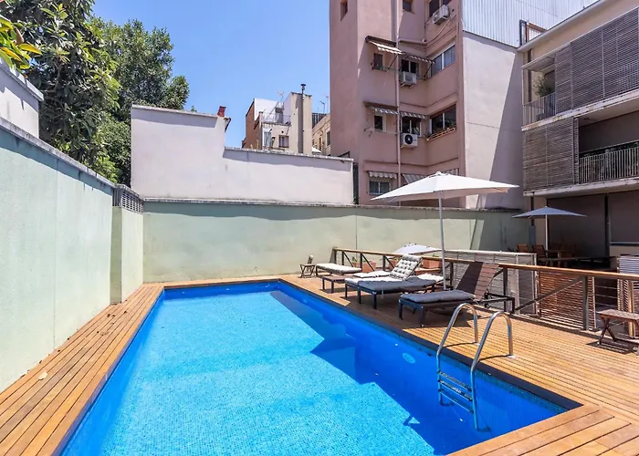 Apartment Barcelona Rentals - Gracia Pool Apartments Center provides guests with the convenience of self-catering amenities, like a full kitchen and a dining area for their enjoyment. Offering access to the rest of Barcelona, Joanic underground station is nearly 10 minutes' walk away. The property opens onto a terrace.